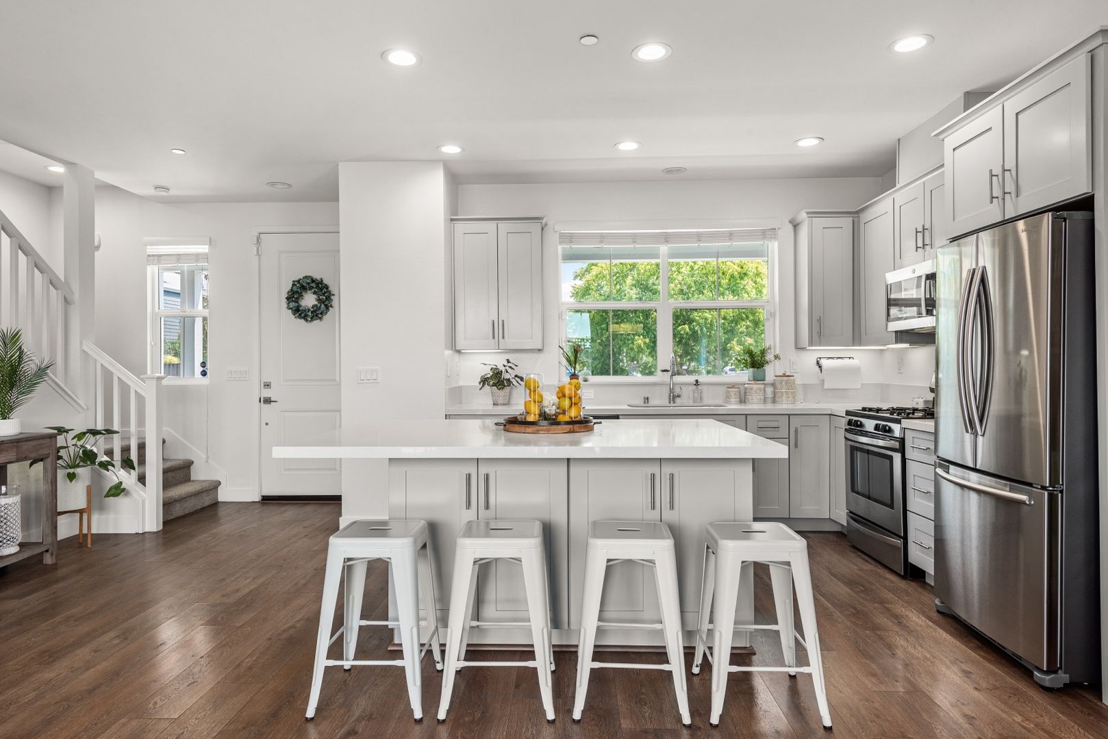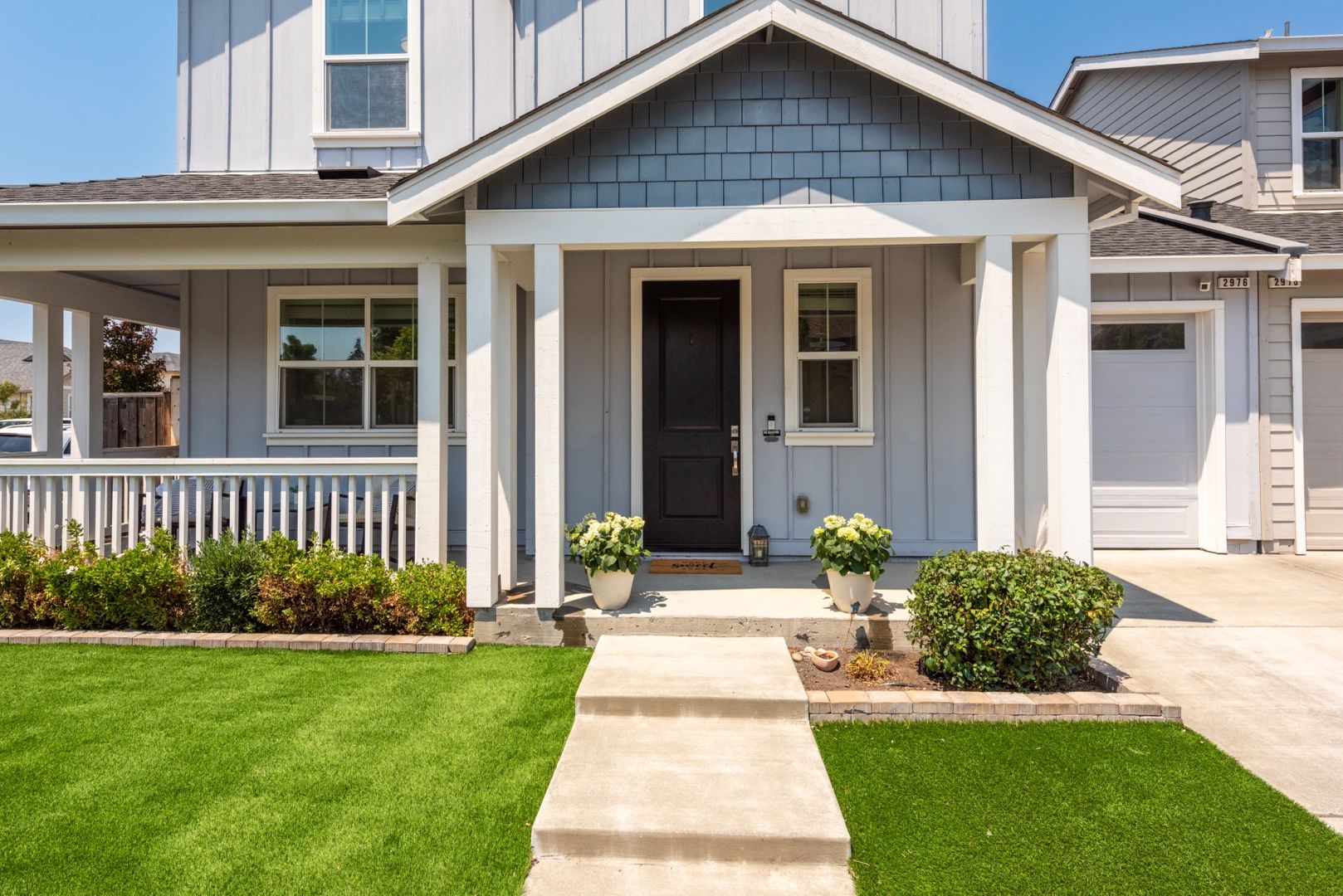 Perfectly positioned for effortless living, this move-in-ready home offers front porch relaxation and backyard entertaining on a prime corner lot. This carefully maintained 3-bedroom, 2.5-bath home seamlessly combines contemporary comfort with a charming exterior. A welcoming front porch invites you to relax with your morning coffee or evening chats, while the lush artificial grass landscaping creates a pristine, low-maintenance outdoor retreat. Step inside to discover a light-filled, open living space adorned with stylish water-resistant laminate flooring—perfect for both everyday living and entertaining. The heart of the home is the stunning kitchen, boasting an expansive island that serves as the ultimate gathering spot for meals, homework, or hosting friends. Seamless indoor-outdoor living is just steps away with not one, but two sliders—one leading to a cozy side porch for quiet moments, and another opening wide to the private backyard, ideal for al fresco dining, gardening, or soaking up the California sun. Upstairs, the thoughtfully designed layout includes three spacious bedrooms, two full bathrooms, and a conveniently located laundry room—adding ease to everyday life. A practical tandem two-car garage with interior access provides ample storage and additional backyard entry. Ideal for healthcare professionals, this home is just minutes from Kaiser Hospital, top-rated eateries, and essential services, offering both convenience and a serene residential escape. Move-in ready and radiating warmth at every turn, this is your opportunity to embrace effortless living in one of Santa Rosa’s most desirable neighborhoods.